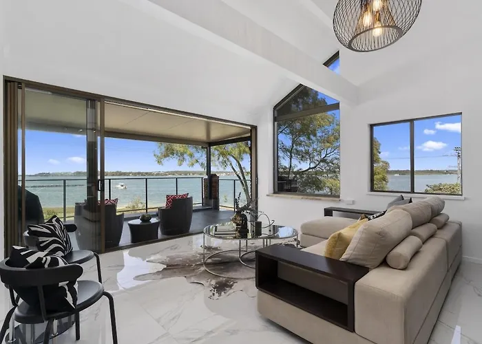 The spacious Bribie Island Waterfront Luxury Apartment Bellara is situated only a 13-minute walk from Sylvan Beach and offers a swimming pool. The apartment welcomes guests to enjoy seaside sea views from a terrace.